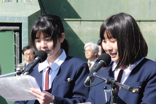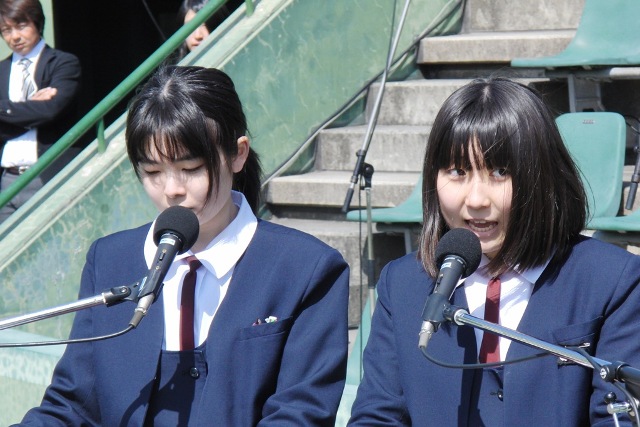開会式で司会の大役を果たした福岡県立城南高校放送部2年